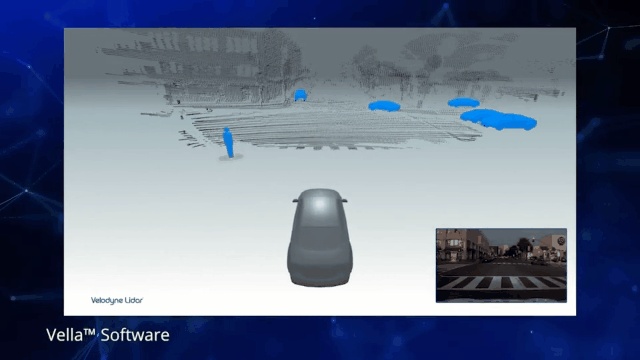 固态激光雷达可以轻松嵌入到包括挡风玻璃后面的车身各处,Vella 软件对激光雷达数据进行解读,以避免和减轻对移动和静态物体的碰撞。