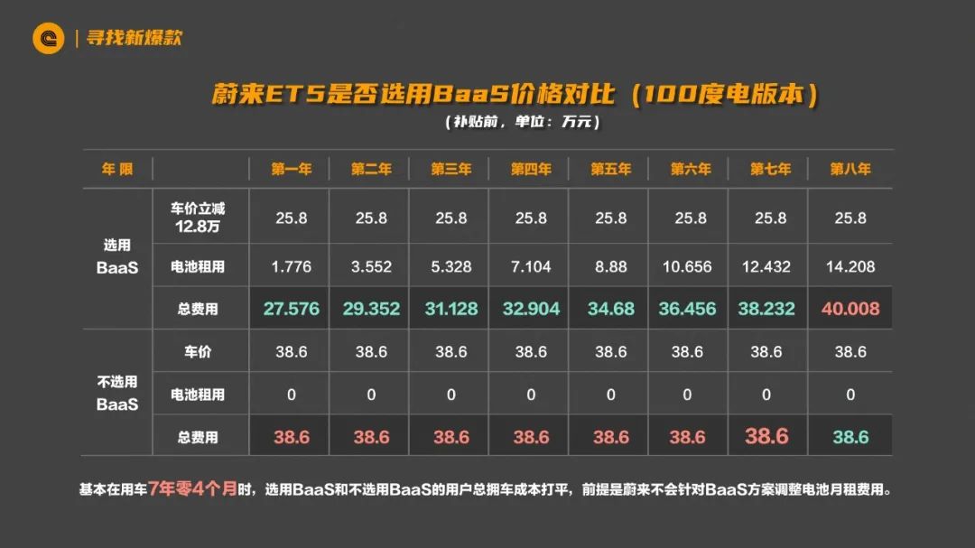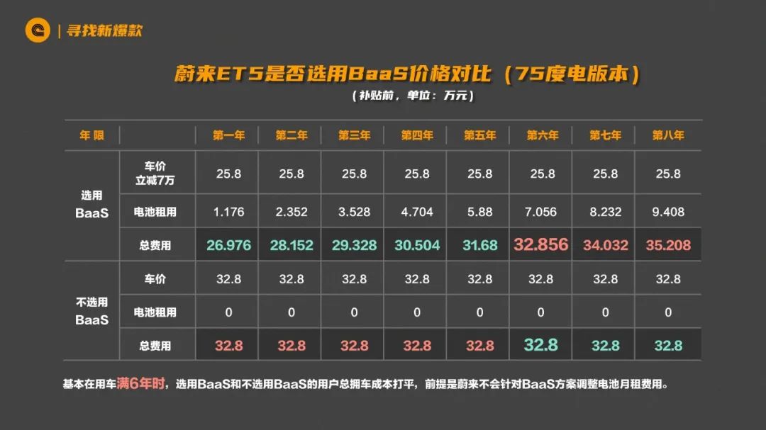 另一种情况就是,这辆 ET5 你不打算用超过 6-7 年,可能用个 2-3 年就卖掉,那我们来看看你到底要不要选 BaaS。