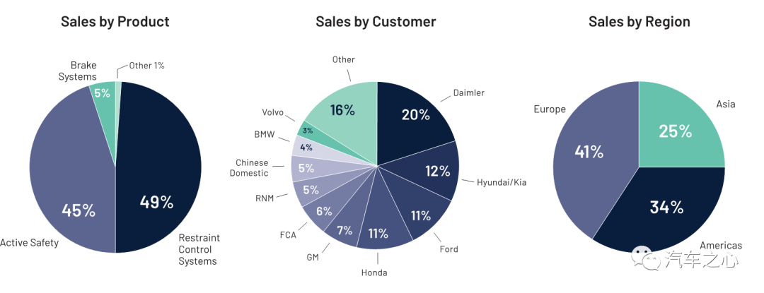 Veoneer 在 2021 年的收入位 16.6 亿美元,其中主动安全带占 6.9 亿美元,ADAS 占 8.7 亿美元。