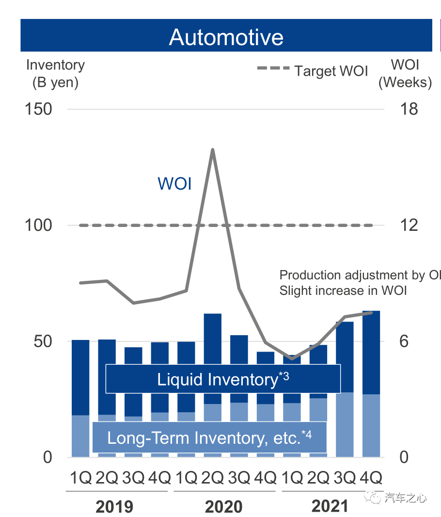 图为瑞萨连续 12 季度汽车芯片内部库存状况,库存从 1 季度就开始持续增加,4 季度完成货品库存大幅度增加,显示出瑞萨芯片供应基本恢复到正常水准。