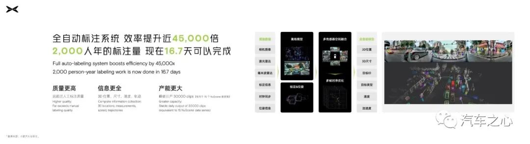 在标注上,小鹏开发了全自动标注系统,相较传统人工标注效率提升 45000 倍。