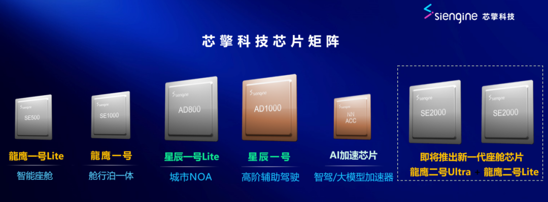 此外,龍鹰一号精准押注「舱行泊一体」趋势,强化性价比。基于 8TOPS AI 算力,该芯片在完成语音识别、手势控制等智能座舱任务的同时,更可兼顾泊车功能。针对泊车这一高频场景,龍鹰一号通过优化功耗控制与响应延迟,将摄像头信号采集到泊车决策的全链路延迟压缩至 10ms 以内,功耗水平低于同类产品,实现「一芯多用」的场景突破。颇具前瞻性的芯片设计只是起点,龍鹰一号的进阶之路堪称教科书级别。其它芯片企业在流片、量产阶段「轻则脱一层皮,重则元气大伤」的困境,并未在芯擎身上上演——2021 年首次流片即一次成功,2023 年搭载双龍鹰一号的领克 08 正式上市,2024 年已稳居国产智能座舱芯片装机量榜首。汪凯在采访时始终强调一点,龍鹰一号不允许失败,芯擎没有从头再来的机会。一是当时国内其它芯片企业很难再复制出一款「龍鹰一号」;二是龍鹰一号能够在领克、银河、红旗天工等车型上快速装车,借此积累生态能力,可以把芯片性能高效释放。这两点指向了芯擎龍鹰一号成功的唯一性与确定性。龍鹰一号在第一仗中打响了知名度,与吉利、红旗等品牌展开多款车型的合作,甚至在 2024 年获得德国大众集团旗下关键海外车型项目定点。龍鹰一号取得成功后,芯擎开启了第二场战役——立足之战。从单一爆品到多产品矩阵,从智能座舱向智能驾驶延伸。在智能驾驶领域,芯擎以星辰一号为主力武器,直接把目标对准了英伟达 Orin,512TOPS 的 AI 算力,相当于两颗 Orin 芯片之和,支持多芯片级联至 2048TOPS,可满足城区 NOA、端到端算法、VLA 等未来技术需求,预计今年量产。在今年的生态科技日上,芯擎进一步发布了从入门级到高阶舱驾一体的多元化解决方案,包括龍鹰一号 Lite、星辰一号、星辰一号 Lite、AI 加速芯片等。根据公开资料来看,芯擎也正在研发下一代座舱芯片龍鹰二号,龍鹰二号 Lite 对标联发科 8678,龍鹰二号 Ultra 则对标高通 8379 和联发科 CX-1。这套产品矩阵始终紧扣高阶舱驾融合的主线展开。芯擎将这一技术路径进行了清晰的排兵布阵:- 入门级场景:龍鹰一号 Lite 和单颗龍鹰一号,已可实现语音交互、ADAS、自动泊车等功能,也可提供舱行泊等功能的一体化集成化。