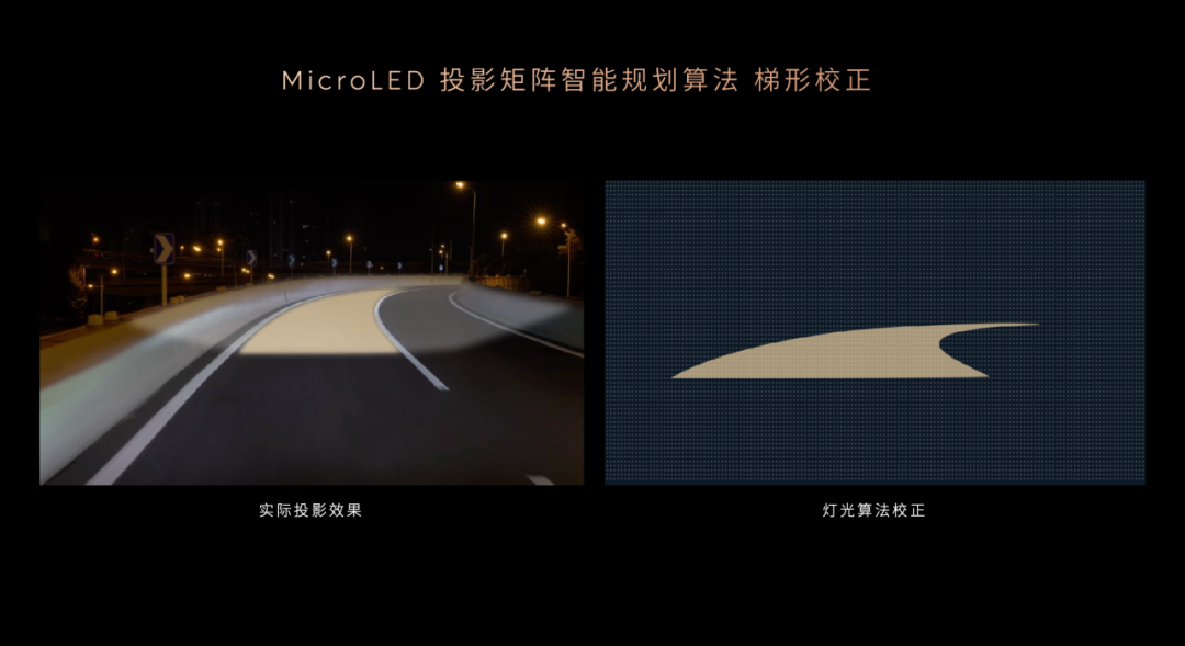 比如问界 M9 搭载了华为车语系统 2.0,面对会车能精准遮蔽光线,避免炫目,提升夜间行车安全,还能在地面投射动态光毯,投射出车辆前进的轨迹,实现弯道变道、精准跟随、自主示宽等提示信息。
