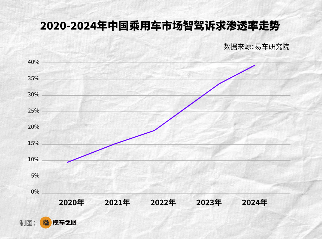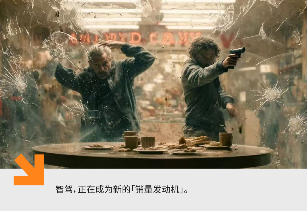 消费者在购车时最常问的三个问题,无非是价格、续航、补能。首先是电池技术的进步,让 600 公里以上的续航变成了常态。以特斯拉、蔚来、理想和小鹏为代表的玩家,不断普及补能网络,消费者的焦虑已经从「电够不够」转向「车聪不聪明」。其次,价格战在不断挤压利润空间。从 2023 年到 2024 年,特斯拉 Model Y 的多轮降价让行业看到:单靠价格和续航,已经不能构成真正的护城河。第三,消费者的心智也在发生转变:智驾体验,尤其是高阶智驾,正成为大家购车决策中越来越核心的考量。在一线和新一线城市,越来越多的消费者会开始关注「车有没有城市 NOA 功能」。在试驾环节,销售也更倾向于展示城区智驾、自动泊车等功能,以此来提高成交率。不少车主反馈,「用过一次高阶能力的 NOA 辅助智能驾驶,就很难再接受回到传统驾驶。」拥堵的城区路段、复杂的立交桥下、狭窄的停车场里,智驾带来的体验差异正在被迅速放大。咨询机构 J.D.Power 的报告指出,消费者购车决策中「智能驾驶功能」的权重,从 2020 年的 12%,涨到 2023 年的 35%。易车研究院发布的购车决策洞察报告则显示,2024 年这个数字已接近 40%。华为乾崑智驾最新数据显示,累计辅助驾驶里程已经突破 50 亿公里。这意味着智驾正彻底走出「配置表噱头」的范畴,真正成为用户愿意高频使用的「日常刚需」。换句话说,电动化之后的下半场竞争,真正的分水岭就是智能化,尤其是智驾能力。这一趋势最直观的体现,来自鸿蒙智行。