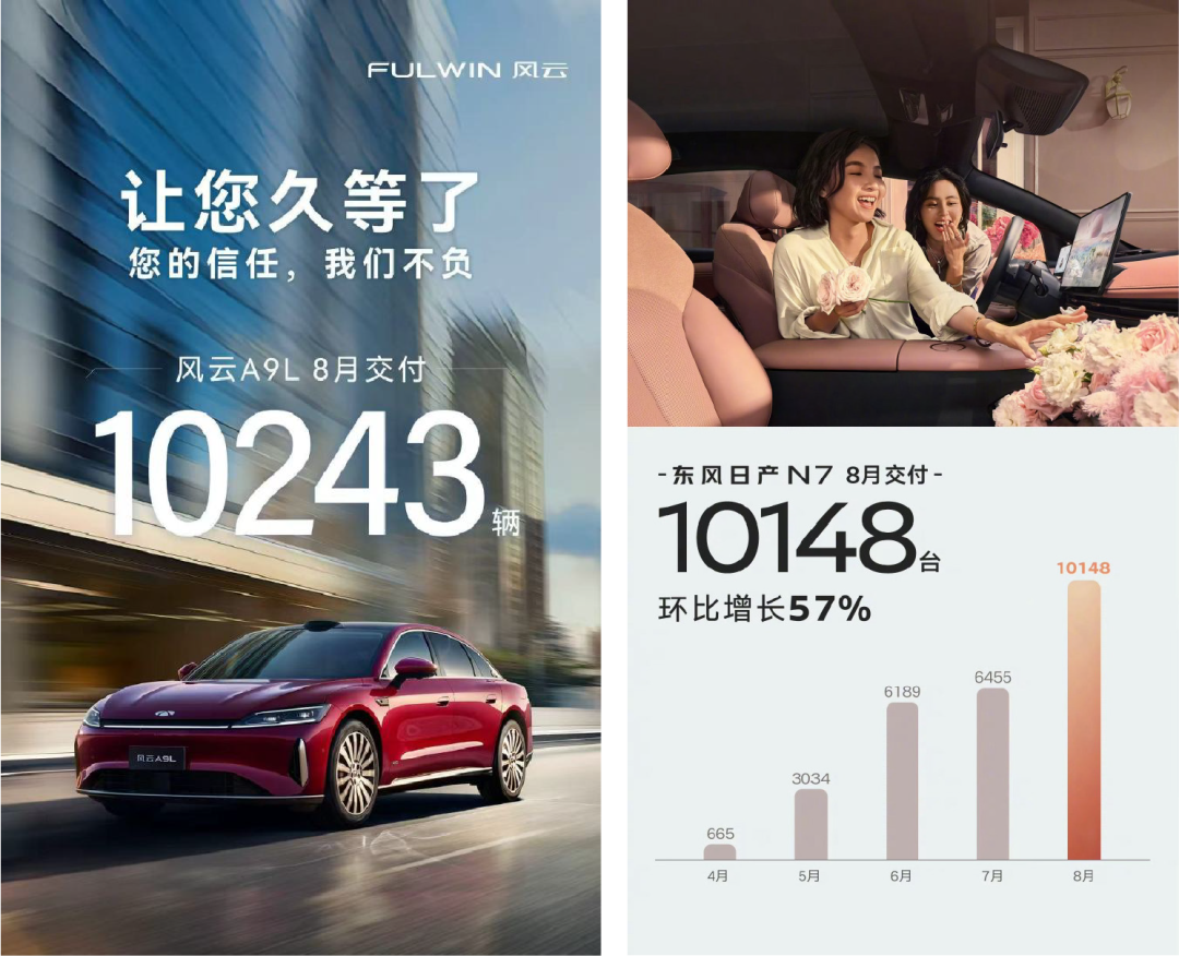奇瑞风云 A9L、广汽丰田铂智 3X、东风日产 N7 均在当月交付量突破万辆或接近万台级别。