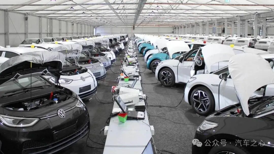2020 年,120 辆大众 ID.3 连着电脑依次刷机的名场面,就是出自分布式的 E3 1.1 电子电气架构,彼时的 E3 1.1 依然还有 52 个 ECU。