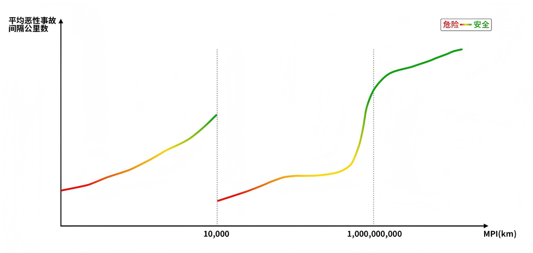 MPI 越低时,如几十公里就得接管一次,驾驶者往往更加警觉,安全冗余发挥效用低; MPI 成倍增长,甚至万公里才发生一次接管时,驾驶者往往认为系统有能力处理所有驾驶任务,甚至出现「脱手脱眼」的完全信任状态。