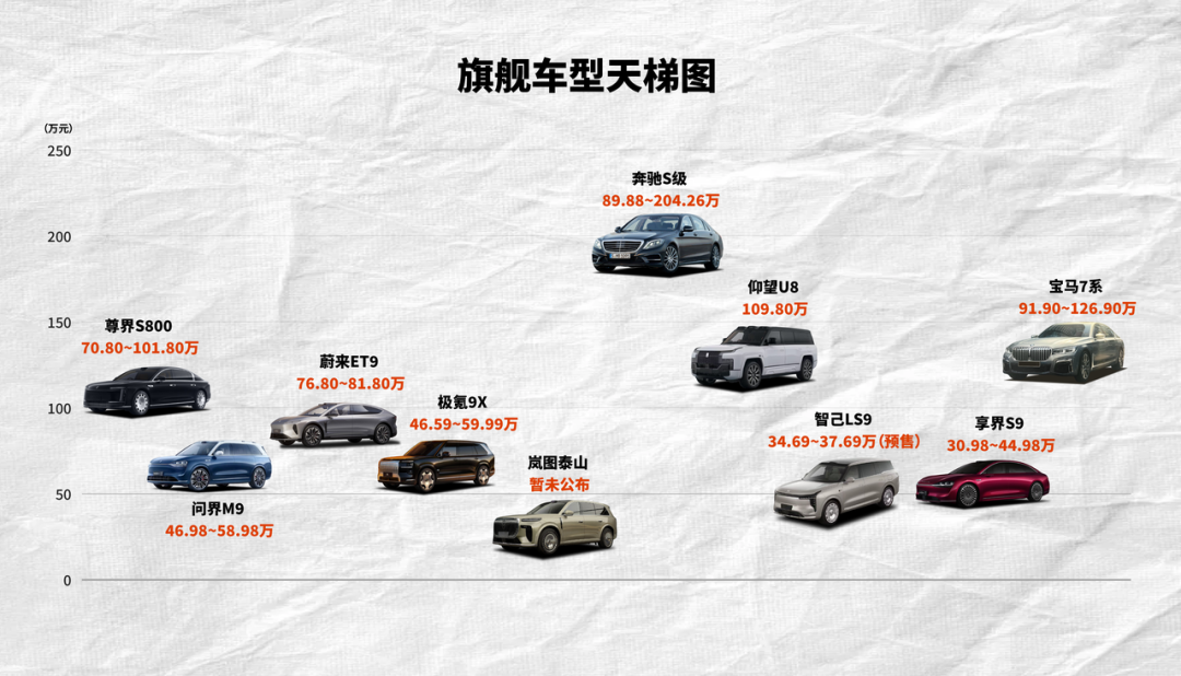尊界 S800、问界 M9、蔚来 ET9、极氪 9X、岚图泰山、奔驰 S 级等各品牌豪华旗舰车型已宣称具备 L3 级架构,华为则在上海车展,也推出可实现商用的 ADS 4,剑指 L3。