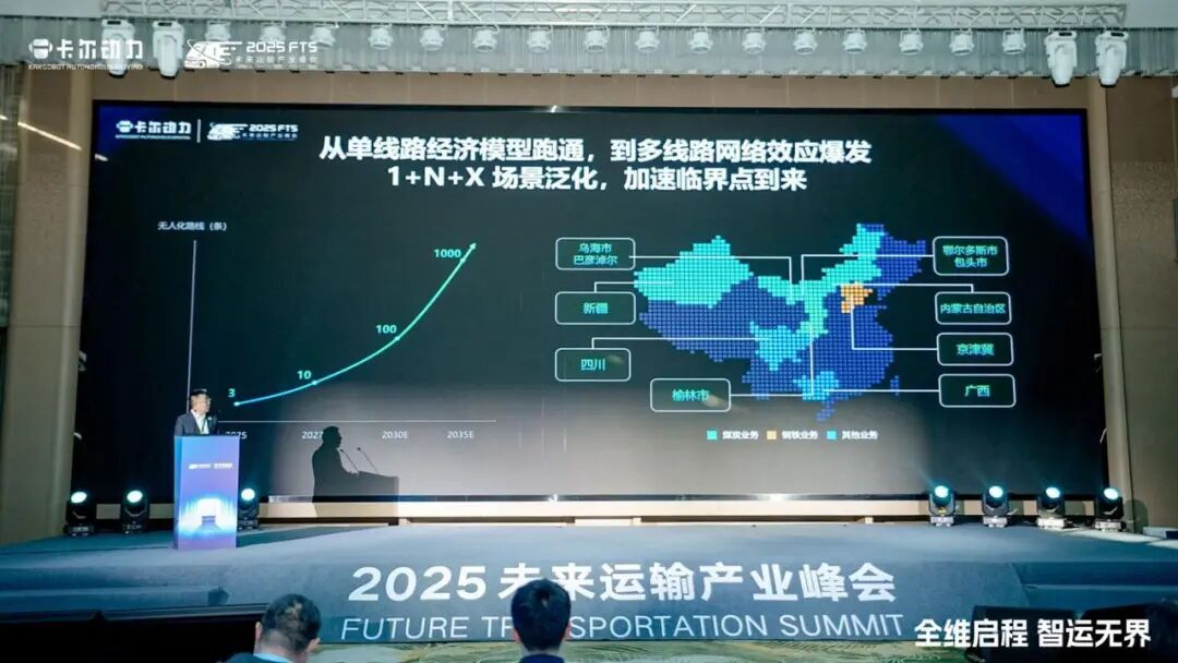 行业领头羊卡尔动力杀出重围,率先跑通了商业化路径。手握 30% 市场份额与超 400 辆自动驾驶车队,今年上半年其单线路经济模型(UE)已转正,单车毛利达到传统货运的 6 倍。万亿级的无人货运赛道从不缺故事,但多数玩家陷入「技术空转」:拿着锤子找钉子,场景水土不服,结果屡屡碰壁。只有卡尔动力反过来「拿着钉子找锤子」:从场景痛点倒推技术方案。卡尔动力 CEO 韦峻青强调,公司从第一天就以场景定义产品,以产品定义技术。这与 Robotaxi「先搞无人化,再找场景」的惯性思路相反。具体而言,卡尔动力面对无人货运这道难题,不是一味陷入「无人化」的死胡同,而是从货运「人力成本太高」、「载重效率不足」的痛点出发,找准了「混合智能编队模式」更务实的方法论:前车保留安全员做 L2 级辅助驾驶,后车完全 L4 级无人化跟驰。在卡尔动力看来,大宗商品运输场景中,编队模式绝非过渡方案,而是长期存在的解法。这也表明,卡尔动力的核心目标不是追求 100% 全流程无人化,而是精准降本,将人力成本砍掉 50%-80%。司机角色也从「开车的人」变成「管理车队的人」。当技术理想主义让位于商业价值时,路往往才能越走越宽。现在,卡尔动力把硬件增量成本压到 9 万元,每年能为货主省下超 10 万元司机成本,回本只需 6 个月时间。卡尔动力营收近三年已连续攀升,今年预计达到 5 亿元,韦峻青判断,当车队规模突破 3000 辆时,公司将完成自我造血,正式跨过盈利拐点。无人货运的底层逻辑永远是效率:多跑一趟、少空载量、少运输损耗、少人力成本。谁能把运力利用率拉满,谁就能改写行业的成本结构。今天的货运行业,40% 平均空驶率、单车每天 5-6 小时有效运营时间、油耗被急刹急加速拉爆、车队靠人工经验管理。效率谈不上,成本却节节攀升。卡尔动力在 2021 年就认准一条路:混合智能编队。核心是「1+N」结构:前车有人领航,后车无人跟随,车队通过低延迟通信保持动作一致,降低风阻和人力成本。听起来简单,但里面都是「算得清」的现实主义。为什么保留人工?因为装卸货、刷卡、过收费站这些节点,短期内人工比无人化更快、更稳、更省心,让方案真正能跑起来。为什么不把「1 拖 5」作为主方案?虽然技术支持,但大宗长途运输需要道路友好度和灵活性,而太长的队列对自身与其它交通参与者都造成不便,因此现实落地还是以 1 拖 1、1 拖 2 编队为主。而编队最难的「密集跟车」细节,卡尔动力也做了细密布局:外车插队会被自动鸣笛提醒;若外车停在队中,头车减速等待,后车绕行;整队还贴有警示标语,减少强行插队风险。今年,卡尔动力凭借混合编队率先跑通全国首个门到门全无人运输闭环:人力成本下降 83%,效率提升 1–3 倍,单车 UE 转正。在此基础上,他们又把场景进一步拆解,构建了更体系化的产品组合。一是换电补能方案。卡尔动力与陕汽、宁德时代骐骥合作,推出首个「底盘换电 + L4」的重卡产品。凭借 5 分钟、513 度电的换电效率,这类车辆理论每天可跑近 2000 公里,几乎是「全天候运力」。二是子母车方案。解决单程运输的老大难:回程空载。1 拖 1 完成载货任务后,回程通过子母车组合,让重车带轻车回家,能耗、轮胎磨损、折旧全部对半砍,实现双向都满载。短途运输方面,推行单车无人化,直接把人从链路上拿掉。单车智能运输方案可以实现「装-运-卸」全流程无人化协同,叠加远程监控与脱困能力,整体人力效率提升超过 90%。值得一提的是,卡尔动力今年推出的重磅新品——kargoBot Space,又把重卡重新设计了一遍。这是一台真正意义上的「货运机器人」,无驾驶舱,纯粹为装载设计,使得货仓体积增加 25%,有效载重提升 10%,单车毛利提升 5 倍,年收入多赚 25–40 万元。该产品将于明年正式上路测试。从当下的大宗长途,到未来全无人高密度运力,这套矩阵几乎覆盖了无人货运的全部主流场景。但样本也分三六九等:有的只是技术 Demo,跑不了商业;有的场景太单一,无法规模化。卡尔动力绕开了这些坑,在内蒙古鄂尔多斯造出一个无人货运的黄金样本。因为这里煤炭资源集中、运输强度巨大,是天然的大宗物流试验场。自动驾驶在这里不是「锦上添花」,是「缺口巨大」。卡尔动力在这里既提升了运力效率、降低碳排放,也攒下了真正硬核的运营数据。其中,「鄂尔多斯样本」无疑贡献最大。当「鄂尔多斯样本」开始盈利后,就意味着卡尔动力已经抵达规模化爆发的前夜。内蒙古本身就是大宗物流富矿,中蒙边境多个千万吨级煤炭口岸,都有机会做成上万辆规模的运营场景。区域道路、气候、运输结构高度相似,复制难度低。据悉,换电模式也在自治区率先铺开。宁德时代今年将在当地建好 20 座骐骥换电站,其中棋盘井、木凯淖尔、伊旗 3 座换电站将组成这条「零碳无人货运走廊」的一期路线。今年 7 月,内蒙古发布省级智能网联政策,明确支持跨盟市无人化运营,长线运输政策绿灯亮起。卡尔动力也已在北京、天津、河北开启跨省试运行。沿着能源大通道延伸,卡尔动力已进入四川、广西等南方区域,逐步构建全国性的无人运输网络。回归规模化拓展的底层逻辑,卡尔动力能复制样本,不靠「蛮力扩张」,靠底层壁垒的打通。第一层是滴滴 Robotaxi 在数据与大模型方面的赋能。背靠滴滴这棵大树,卡尔动力无需在基础数据采集、训练框架上重复「造轮子」
