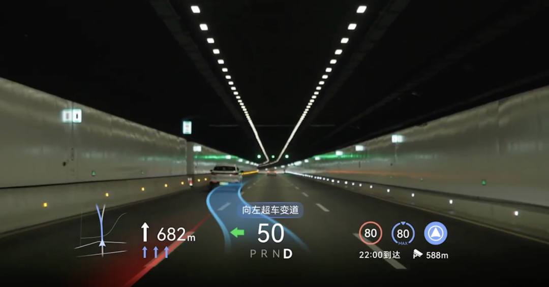 这些都是 AR-HUD 从「能用」到「好用」,必须跨过的坎。因此,行业正在用更严格的指标重新审视 AR-HUD 的价值,比如实景贴合度。它考验的是 AR-HUD 是否具备足够精准的环境感知与空间计算能力,能否在动态行驶中,让虚拟信息与真实道路保持高度一致,而不是「漂浮在视野里」。在这一标准下,小鹏 P7 与问界 M8 基于华为乾崑车载光的支持,率先交出答卷。凭借 AR-HUD 在静态显示质量与动态场景贴合度方面的表现,通过了专项测评并获得认证,成为少数真正「对得上路」的 产品量产案例。华为乾崑之所以能够精准解决痛点,在于软硬件协同的系统能力。一方面,从底层芯片、核心器件到整机光学设计进行全链路优化,满足了复杂光学成像要求;另一方面,AR-HUD 与智能座舱、智能驾驶系统深度协同,确保在高速、转向、颠簸等动态场景下,画面稳定、逻辑一致,从而降低长期使用带来的视觉疲劳。而 AR-HUD 下一步延展方向,则是主动安全,具体路径包括:- 在识别「鬼探头」等高风险场景时,即时生成红色警示框;