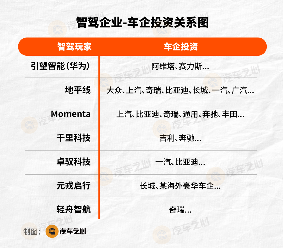 目前 Momenta 是定点项目覆盖车企最多的,同样也是获得不同车企投资最广的智驾公司。