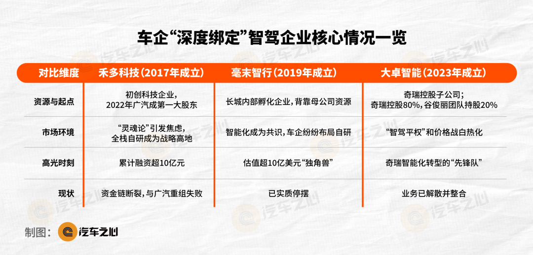 大卓靠奇瑞输血,禾多、毫末开启过市场外部融资,但本质上,三家都被车企「内部供应商」的身份给套牢了。