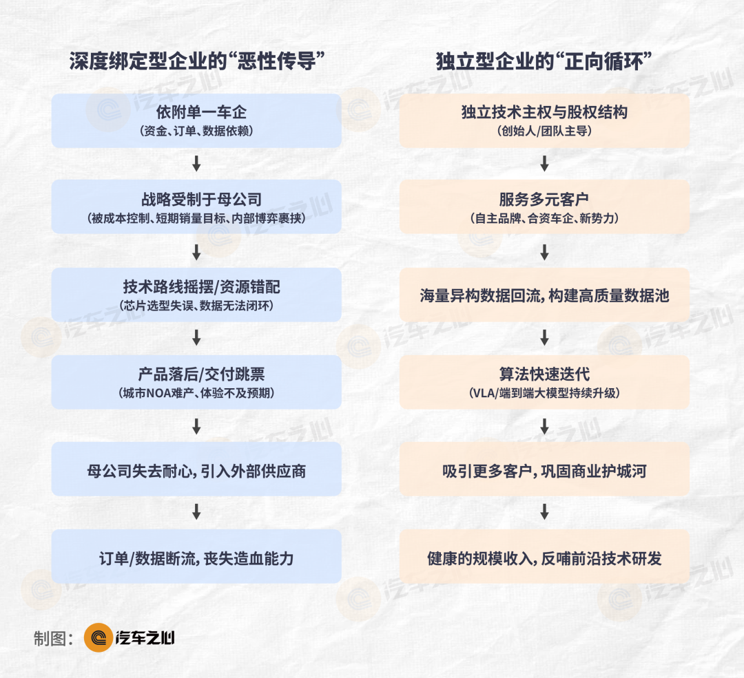 至此,智驾企业内部孵化这条路径基本终结,而独立智驾企业却屹立不倒。