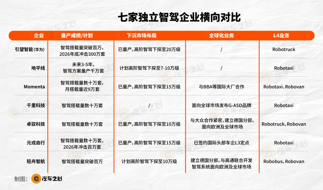 面向下一个智驾黄金十年,七家企业沿着两条增长轴继续血拼: