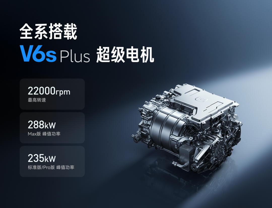 同时全系标配 V6s Plus 超级电机,最高转速提升到每分钟 22000 转,单个电机的峰值功率高达 392 匹。