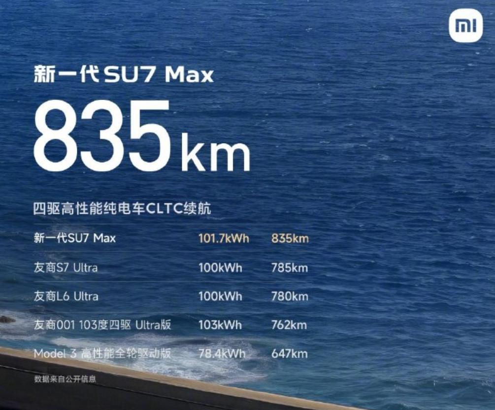第一是新 SU7 三电升级。过去行业的卷续航总需背负着极为沉重的代价。行业内 50 万以内、电池包大于大于 100 度的车型越来越多,但同时电池越来越大、车也越来越重,边际效益开始下降。