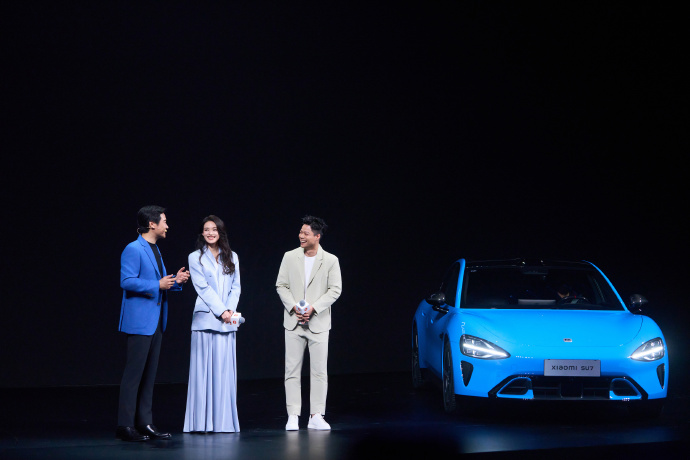 一个很微妙的细节是:以往国内新能源轿车对标的是 BBA、Model 3,如今 SU7 已经各家发布会上的常客了。