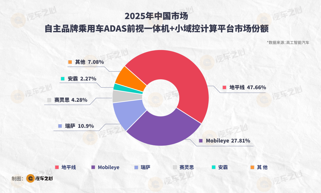 一个有关地平线。2025 年中阶市场 ADAS 前视一体机+域控芯片中,地平线以 47.66% 拿下市占率第一名。