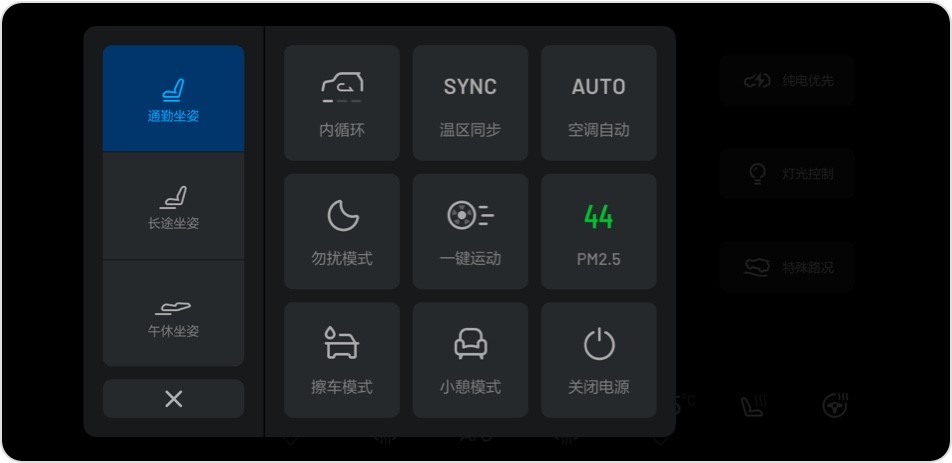 11.新增功能控制屏快捷菜单。坐姿切换、情景模式等功能,支持在设置中进行自定义。